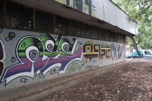 A large 2013 composition by Nes, Moresko, and Deroks comprises three connected graffiti on a grey background, executed in colorful wildstyle with prominent arrow elements. The work is visible on Google Maps, documented in a 2013 photo roundup on the FortyFivers blog, and a detail photo appears on the MORESKO profile on Streetpins.