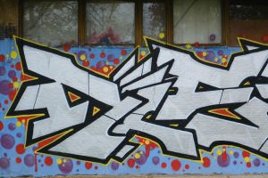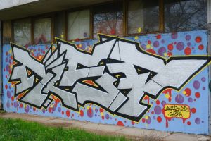 Rendered in a wildstyle, this 2024 piece presents silver-painted letters that are difficult to decipher. The tag “QS” is clearly visible and may indicate a crew or the author, while the painter is possibly Dizzy although attribution remains uncertain. The work is documented by before sunrise.