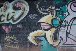 A complex collaborative 2003 piece by Diabolic, Demon, Viet and Angel combines several distinct characters and a variety of textual elements painted by different hands. Although it is unclear if the entire composition was completed in a single year, archival sources confirm that part of the work existed in 2003. The composition is visible on Google Maps, appears in a photographic feature on the FortyFivers blog, and is also referenced on the SrbInside website.