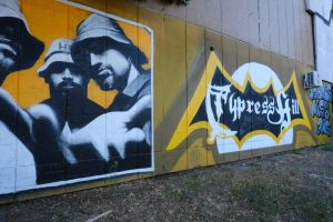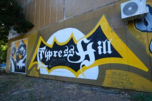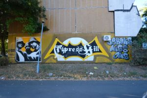 One of the oldest surviving graffiti works in the area, this 1996 piece in a blackletter lettering style was painted by Nes, Mise, Deroks, Jamaz and Dr. Qee and includes an inscription and the logo of the group “Cypress Hill”. The work was restored in 2025 and is documented by Fortyfivers45 and can also be seen on Google Maps.
