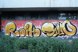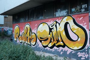 A dynamic 2024 graffiti piece by Nes and Symo featuring stylized lettering. The artists names are incorporated into the design as expressive tags executed in vibrant hues and bold outlines, merging fluid shapes with energetic forms. This piece is also documented in the article FortyFivers Blog and in a before sunrise post on Instagram.