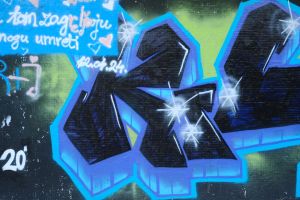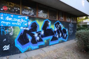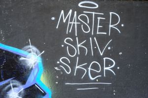 Rendered in bold 3D letterforms, this 2020 piece by Skiv, Sker, and Master uses strong highlights to model volume against a matte black background. The painted text is intentionally complex and difficult to decipher, prioritizing sculptural form and depth over clear legibility.