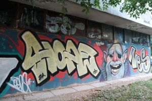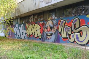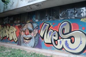 A collaborative 2024 piece by Hope, Nes, Oneste, Jens and Viet combines character-driven, cartoon-like imagery with bold 3D shading and playful forms. The work is documented by wunste and shared by Fortyfivers45, while a post by Boris Bulatović includes video footage of the painting process.