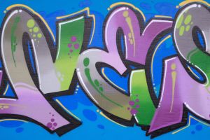 A large collaborative wildstyle 2025 piece by Nes and Hope is painted on a vivid blue background and composed of dense, interlocking letterforms. The composition fills the surface with overlapping shapes and dynamic flow, emphasizing complex linework and layered color.