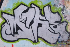 A monochrome piece rendered in bold block letters, with strong, simplified letterforms and minimal color variation. The work is by an unknown author and has been tentatively attributed to Moresko, although that identification remains uncertain. The graffiti is visible on Google Maps, indicating that it existed no later than 2014.
