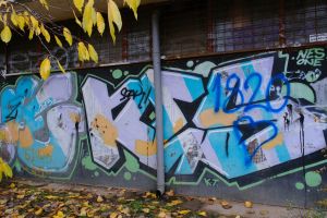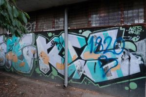 Painted by Nes and possibly another collaborator, this 2013 piece is executed in wildstyle lettering with dense, interlocking forms that make the text difficult to read. The work is best viewed on Google Maps where closer photographic detail is available.