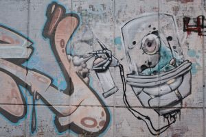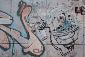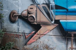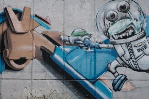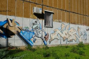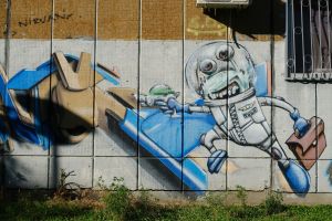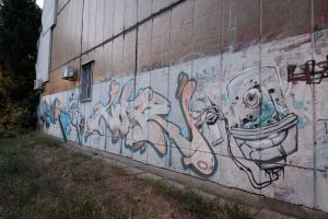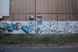 A collaborative composition by Demon and Hope features alien-like characters integrated with bold, three-dimensional lettering, merging contributions from different authors into a single piece. The work is documented on Walls of Belgrade Flickr and is included in the third edition of the Street Art Belgrade book. The graffiti is visible on Google Maps, indicating that it existed no later than 2014.