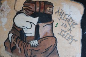 One of the earliest surviving works in the area, this 1995 piece by Dr. Qee depicts the comic character Bob Rock from the Alan Ford series in a cartoon, illustrative style. The work is documented by FortyFivers Facebook and was shared on Fortyfivers45 Instagram.