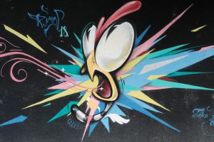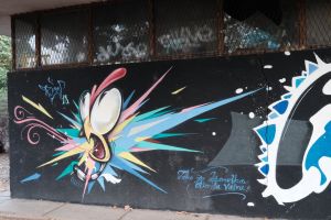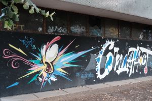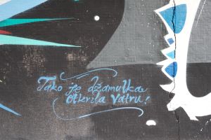 This composition by Piros pairs a 2018 graffiti and a 2025 addition, combining a cartoon character named Džamutka with the painted inscription “Солидарность”. The illustrative, character-led style references Piros’s Placebo series and creates a unified image from works made in different years. The piece is documented by Petar Popović Piros on Instagram and is discussed on the Urban Heritage Hub.